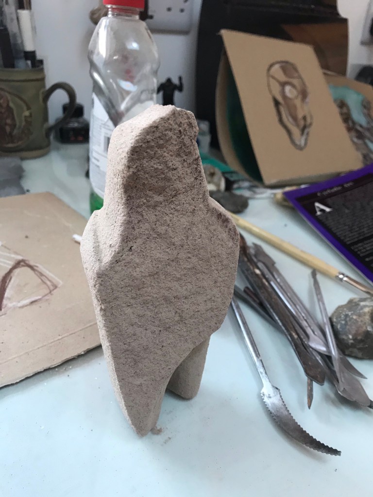 I have decided to leave the front as it is, as this helps give an ambiguity to the sculpture. Tomorrow I will tidy areas up and finish the back.