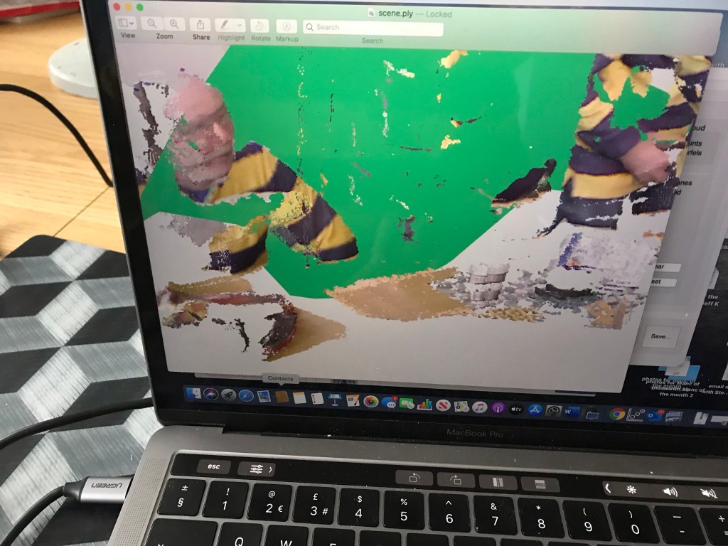 The software to run this is provided by Skanect. In theory this should work pretty well but as you can see from the photos above there are a lot of teething problems, of which being not totally tech savvy I really do not know how to solve.