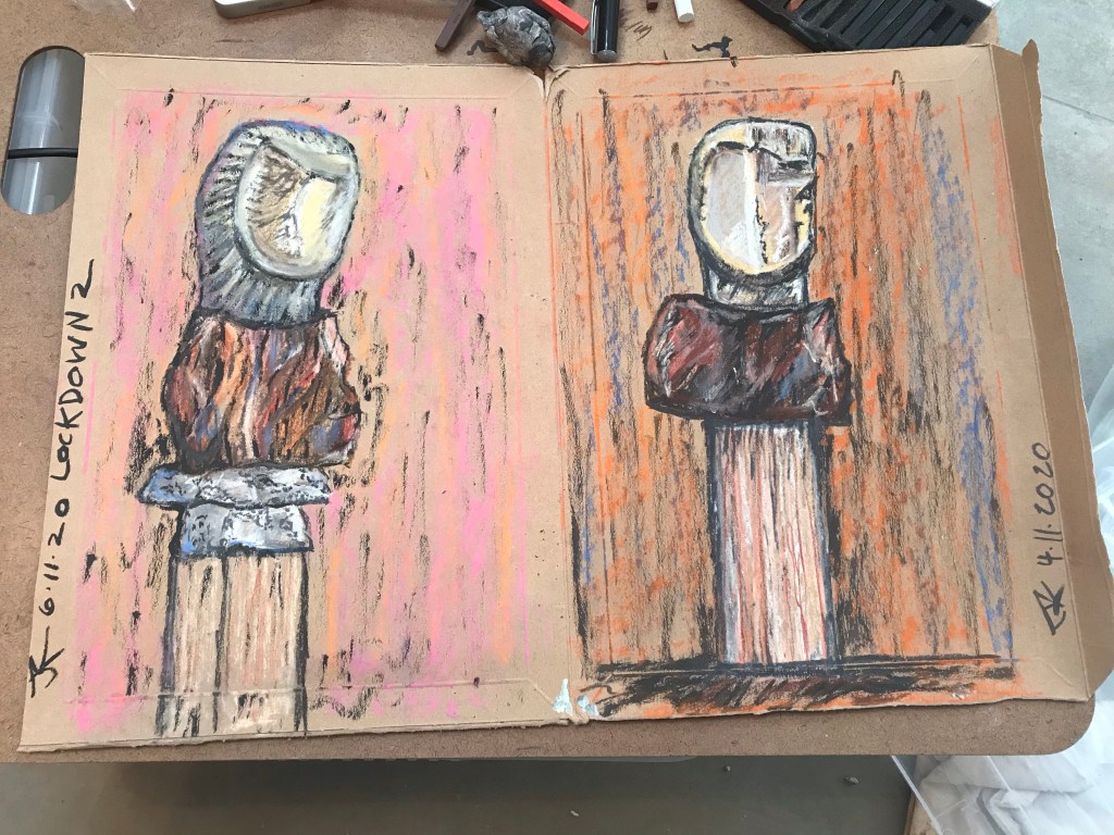 Study of sculpture charcoal, chalk, ink on envelope of Amazon origin