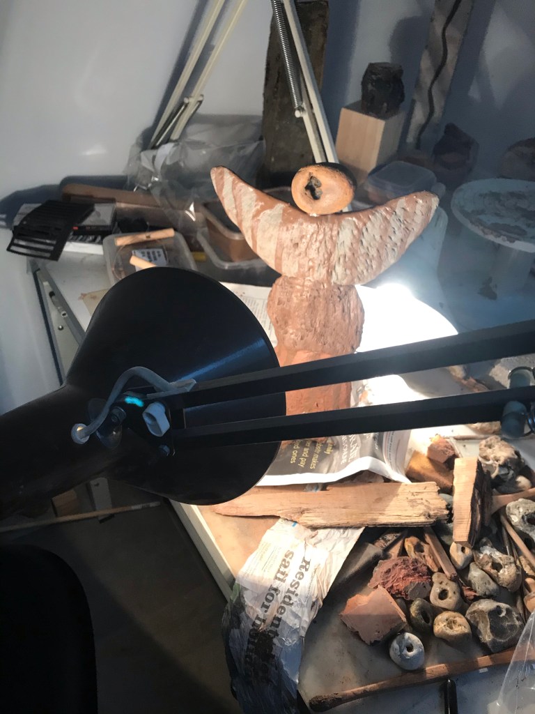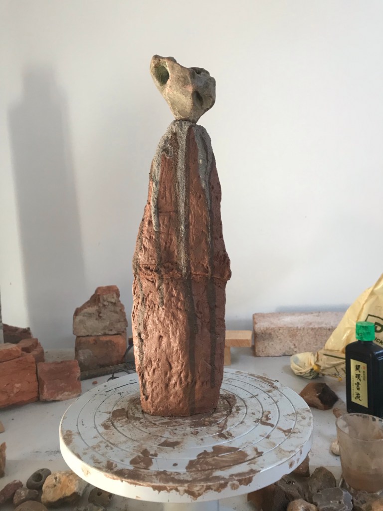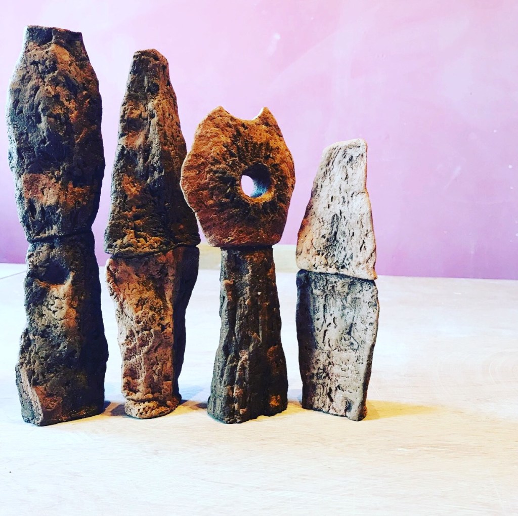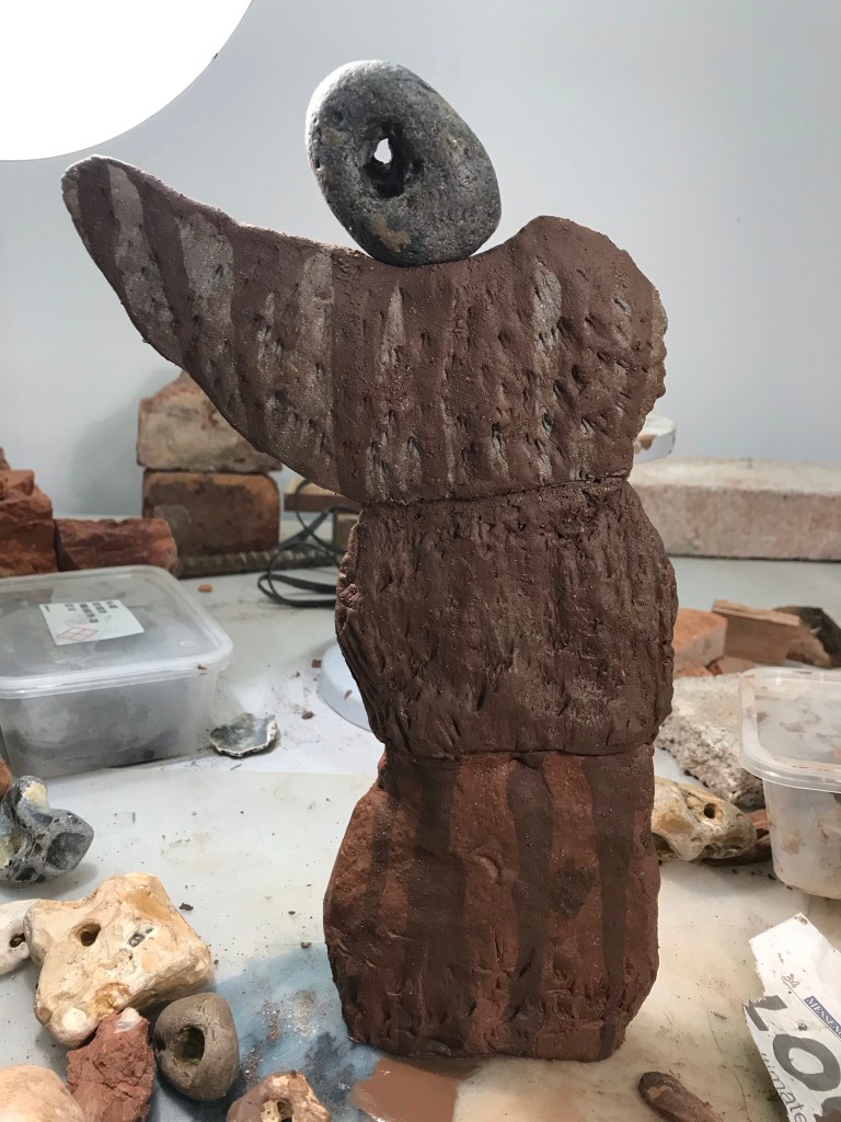 Today’s offering drying out I seem to have made an Angel or someone with their arms out . . . Grogg pink, black Vulcan, grey rocc clay with black Vulcan slipp drips and a found stone. . . . art #artistsoninstagram #artist #clay #contemporarysculptor #pottery #contemporarypottery #contemporaryceramics #ceramics #sculpture #cottononmcr #wip