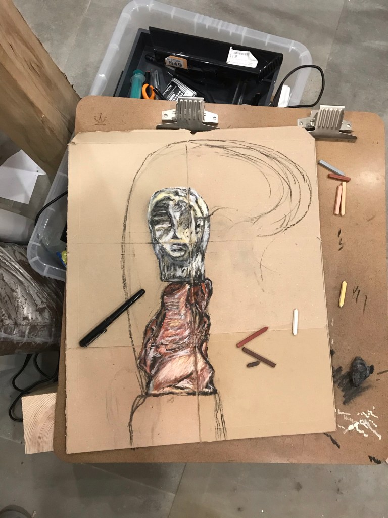 Finally I found some quiet time to finish drawing/ sketching this study. It is the biggest one yet using a ground of four Amazon card envelopes. It can be hard trying to convey brick, limestone and concrete with a limited chalk pallet but I think it works. . Stack study Chalk pastels, charcoal, ink and cardboard envelopes of an Amazon origin. . . . .