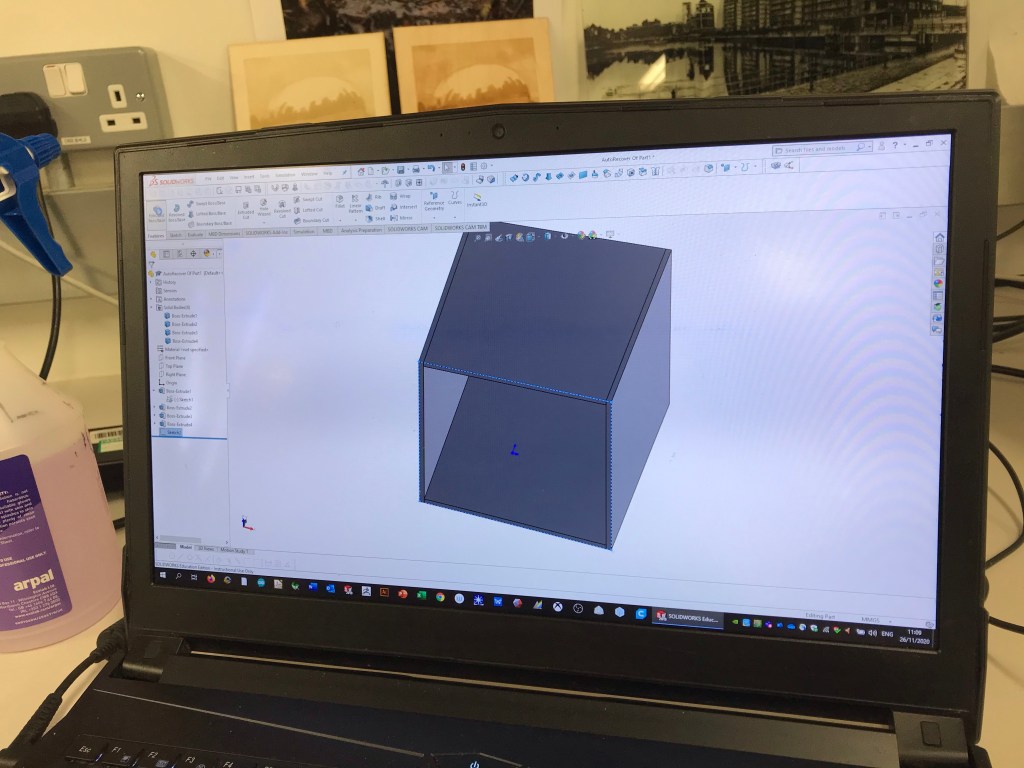 First measure the volume for the box that the silicone will be poured in to. Convert these measurements in to a digital structure in the Solid Works program so that this information can be sent to a laser cutter . Laser cut box panels. This saves so much time Glue the panels together and place model in my case a carved stone head in the box. Mix the silicone and pour it in to the box and wait for it to go off. Once it is solid release it from the box. Cut splits in to the sides of the mould and remove the stone head. The inside of the mould had limestone dust residue left in it. Strap mould and pour the mixed resin inCan you guess which is the resin head?