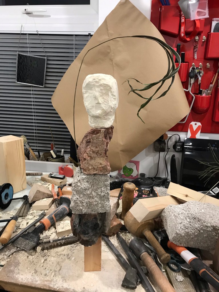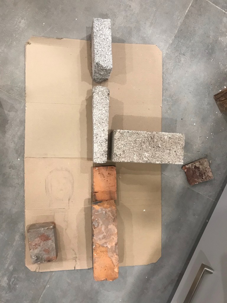 I am also as they say chomping at the bit to find some time to 3D scan each component that goes in to making one of my bigger sculptures. This would include the stone, the shards of brick, the concrete block and the wooden blocks. for one of the sculptures I would like to create peg and holes so that it all clicks together like leggo but I would also like to make two sculptures out of one by mixing the 3D printed elements with the original components.